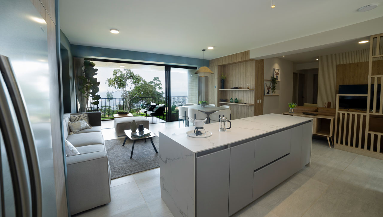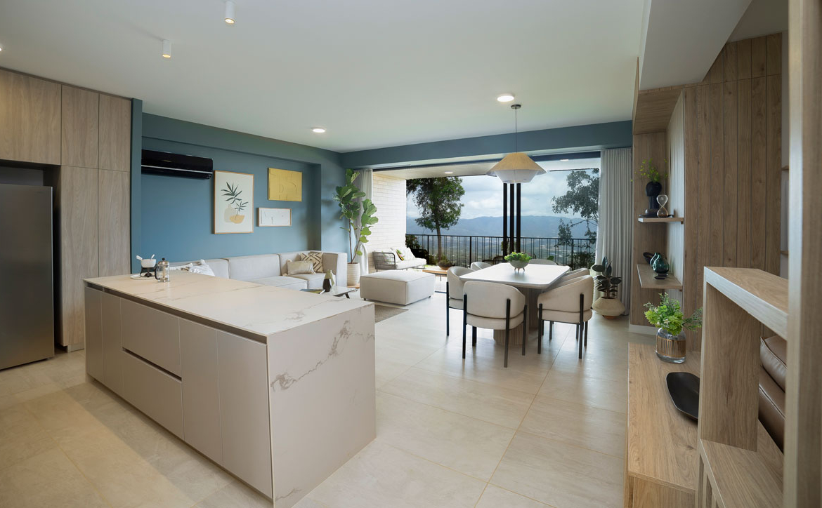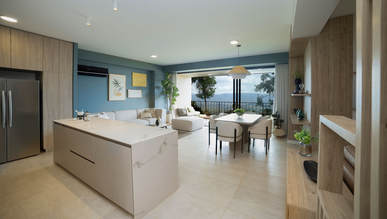 Un proyecto campestre de lujo, con apartamentos que promueven una vida saludable para sus residentes y cuya determinante principal es la vista hacia las montañas y el contacto con la naturaleza.